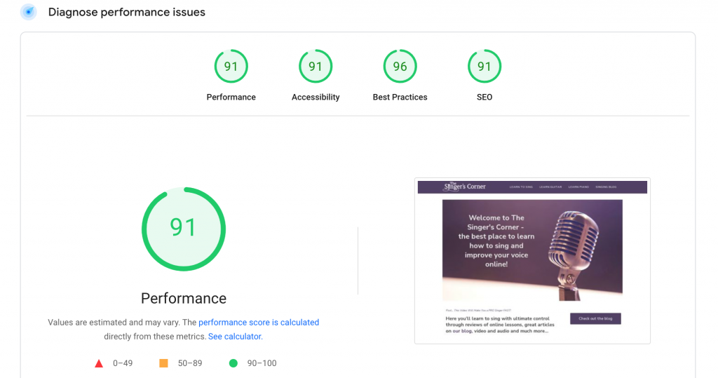 Development of the “The Singer’s Corner” Website for company in USAHome » Portfolio » Development of the “The Singer’s Corner” Website for company in USAType Of Services Website Development Website Redesign WordPress Development Technical SEO setupTech Stack WordPress Oxygen Builder Gutenberg HTML + CSS PHP JavaScript jQuery Rank Math SEO pluginScope Of Work Complete re-design of the site while keeping the old functionality WordPress Template Development Technical SEO optimization Accessibility optimizationFull Responsive WebSiteFull WebSite responsiveness for comfortable use on all devicesGoogle Page Speed results 90+Performance score — 91% Accessibility score — 91% SEO score — 96% Best practices — 91% Header Footer Page Blog Mobile header, menu Mobile footerWould you like to start a project with us?Contact us